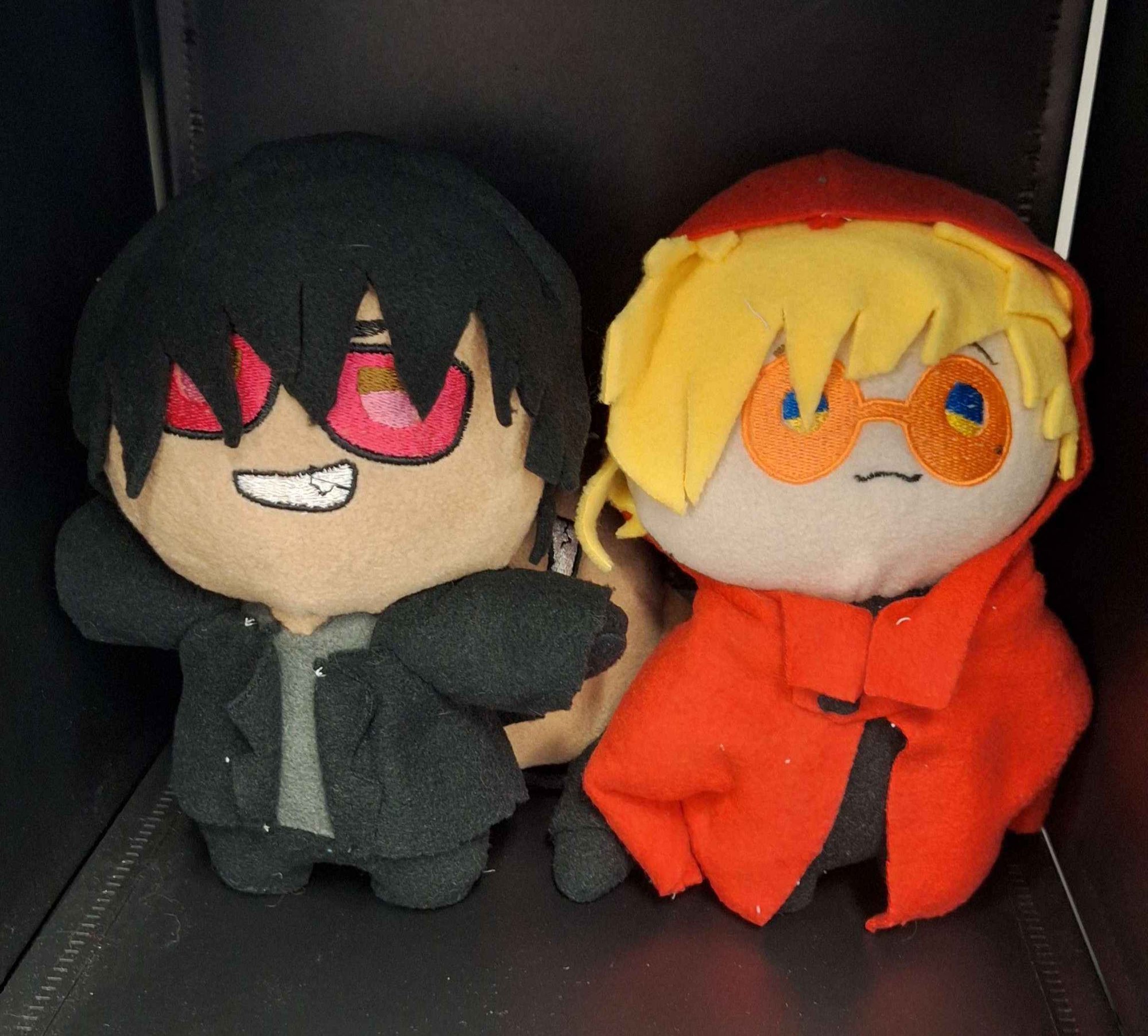 Chibi plush inspired from the anime Trigun Stampede . Hand made from fleece and standing approximately 8-9 inches high. Each plush also squeaks.